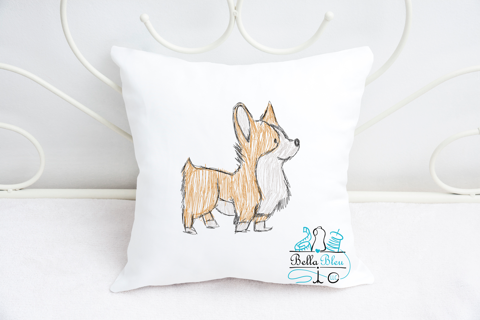 Corgi scribble machine embroidery design. Corgi's are smart, whitty and full of energy even though they have short legs they can keep up with livestock and children both! I had one named Wolfgang, known as Wolfie. He loved his little people and if they got too far out the backyard, he would herd them back to the house.