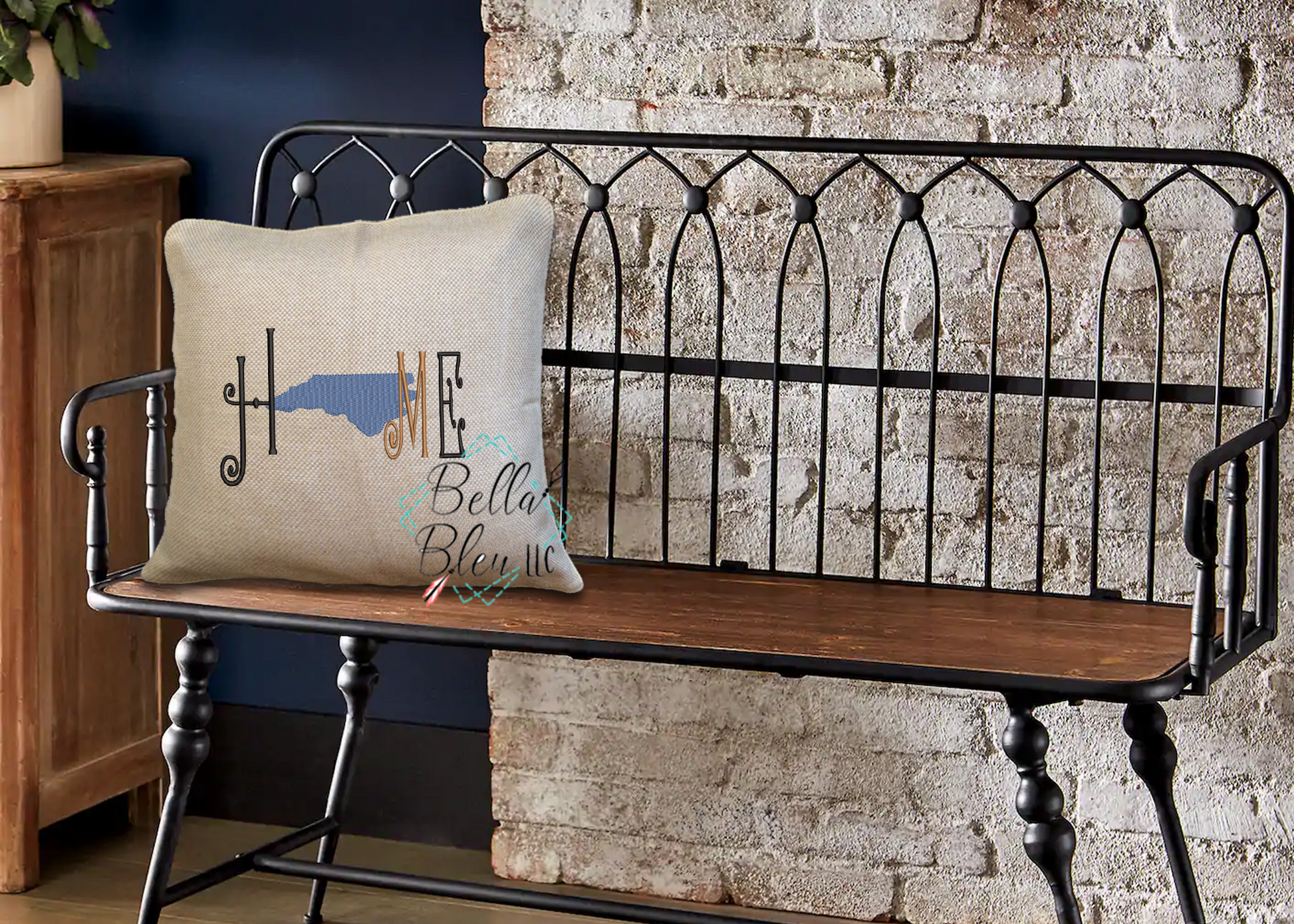 Home Saying with a filled state of North Carolina as the "O" machine embroidery design
