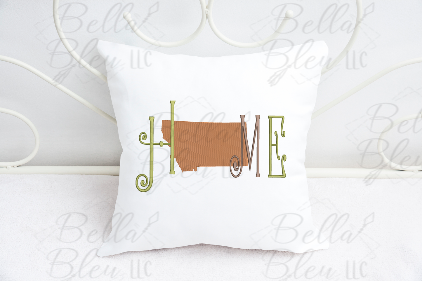 Home Saying with a filled state of Montana as the "O" machine embroidery design
