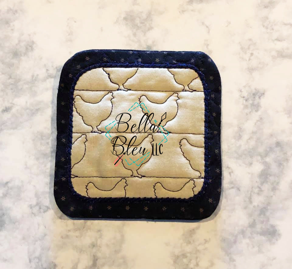 In the hoop Mug Rug with Chicken Quilting Stitch