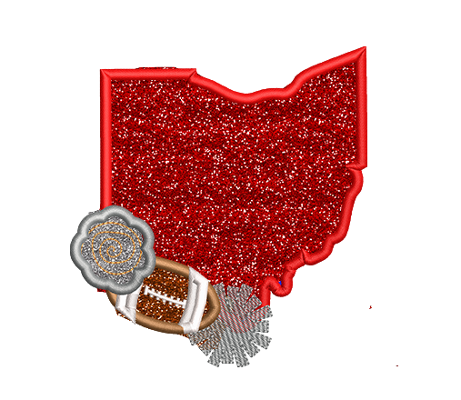 Calling all Ohio Football fans! This design is an applique for the state of Alabama, football and the flower and the pom pom is fill.