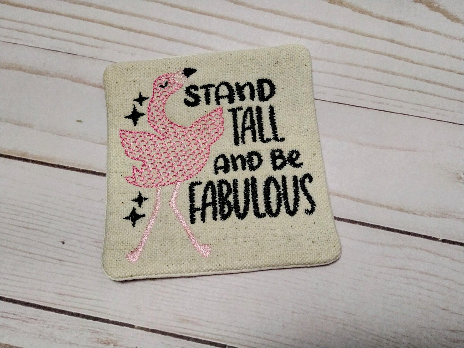 Stand Tall and be fabulous embroidery design is part of the Flamingo Too Set. It is an adorable design of miscellaneous sketchy, motif, fill and satin designs that any bird lover would like.