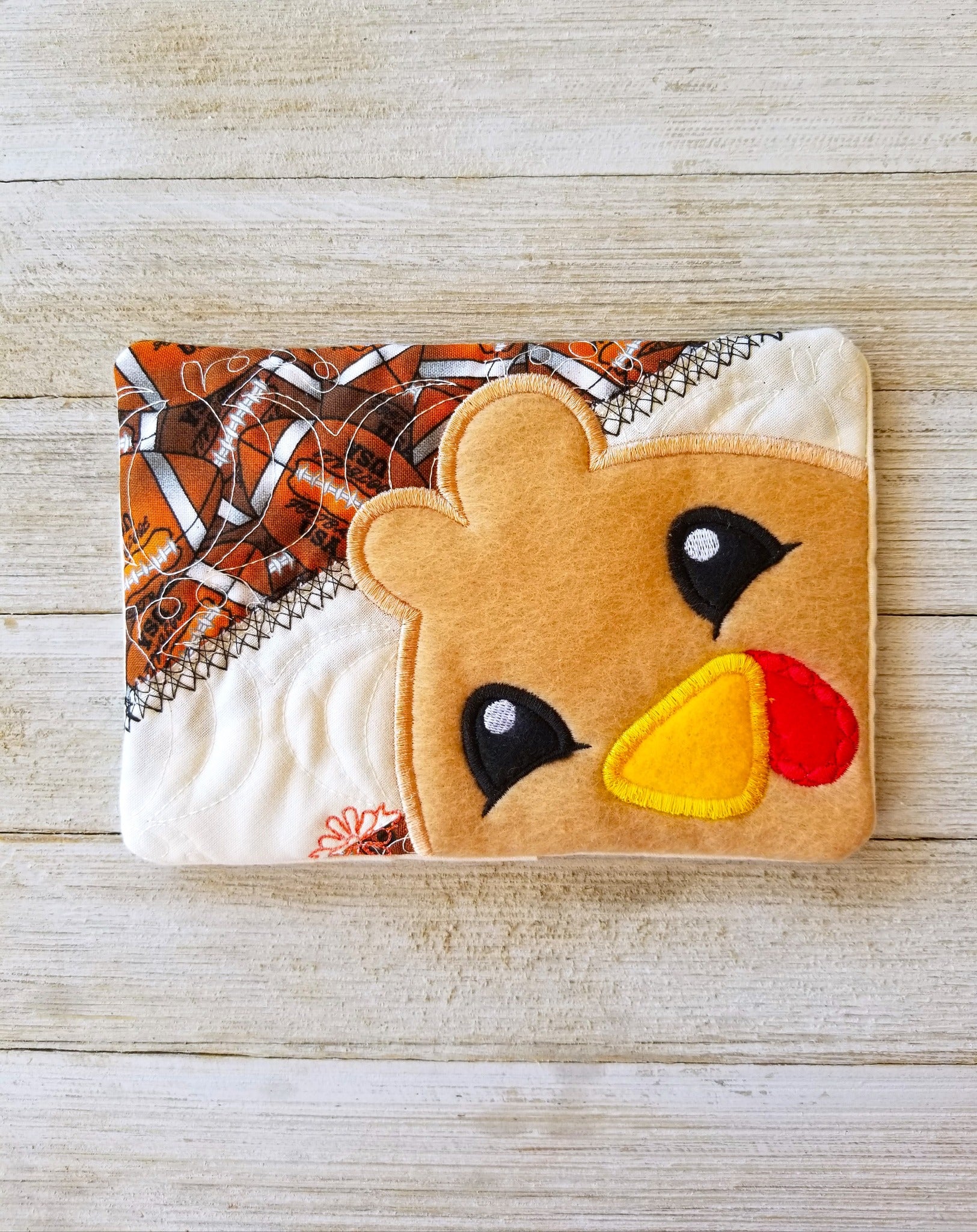 Enjoy your cup of coffee, tea or hot chocolate on this festive ITH Tommy the Turkey Mug Rug.